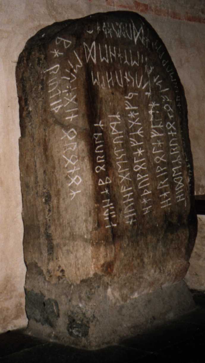 The Stentoften stone, which today is located in the Church of St. Nicolai in Sölvesborg, has an Old Futhark inscription, containing 144 runes. The stone was moved to the church in 1864 in an effort to neutralize its alleged magical powers. After its rediscovery in the outskirts of Sölvesborg in 1823 the Stentoften inscription remained an enigma to all serious researchers until 1997-1998, when it was first deciphered by the author of this web site.
