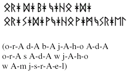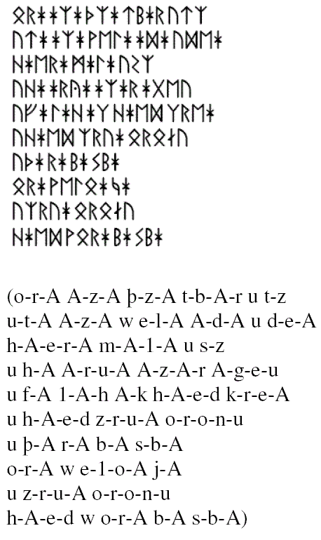 A Hebrew/Aramaic transcription of all the runes of stone A can therefore be written in the following way: