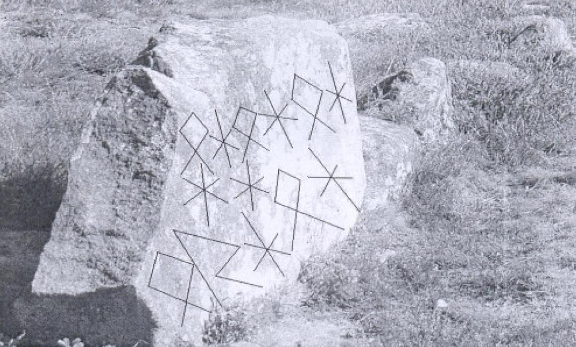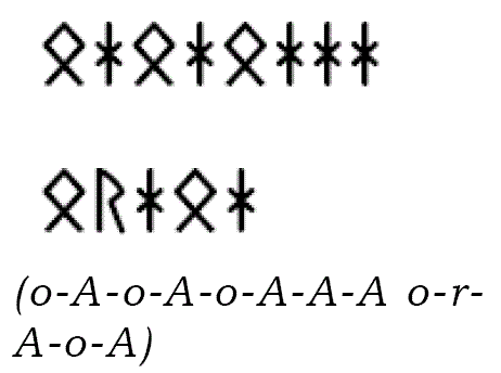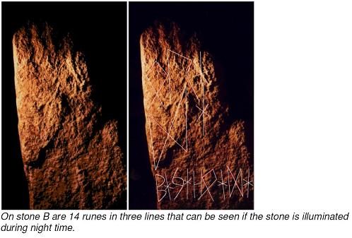 In all there are therefore 14 rows of runes on stone A, and the runes of these rows can be transcribed as follows: