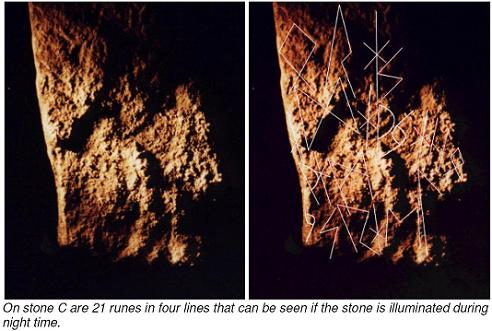 ... so in total there are 21 = 7×3 rows of runes on the three big stones - A, B and C - of the monument.