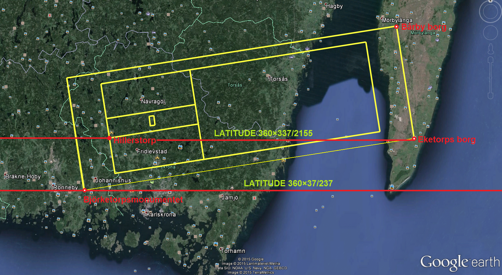 That the Björketorp Monument corresponds to the tomb of Rachel is also indicated by the latitude of Björketorp, which is 360×37/237. The latitude of Rachel's tomb in the land of Israel, seems to have been 360×541/6140, which can be written as 360×541/(2×3070). Thus we have the digits 237 in the denominators of both latitudes,