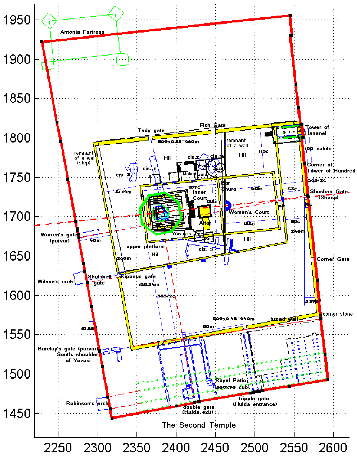 The ground geometry of Solomon's temple shown as overlaid on Warren's map