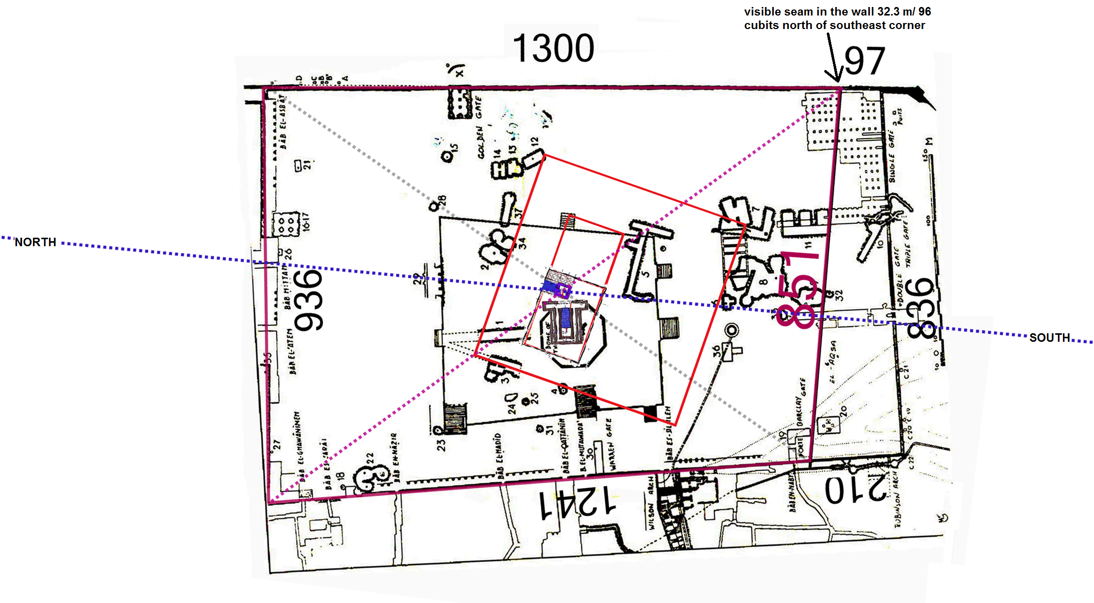 - Eastern wall: 1300 + 97 = 1397 cubits